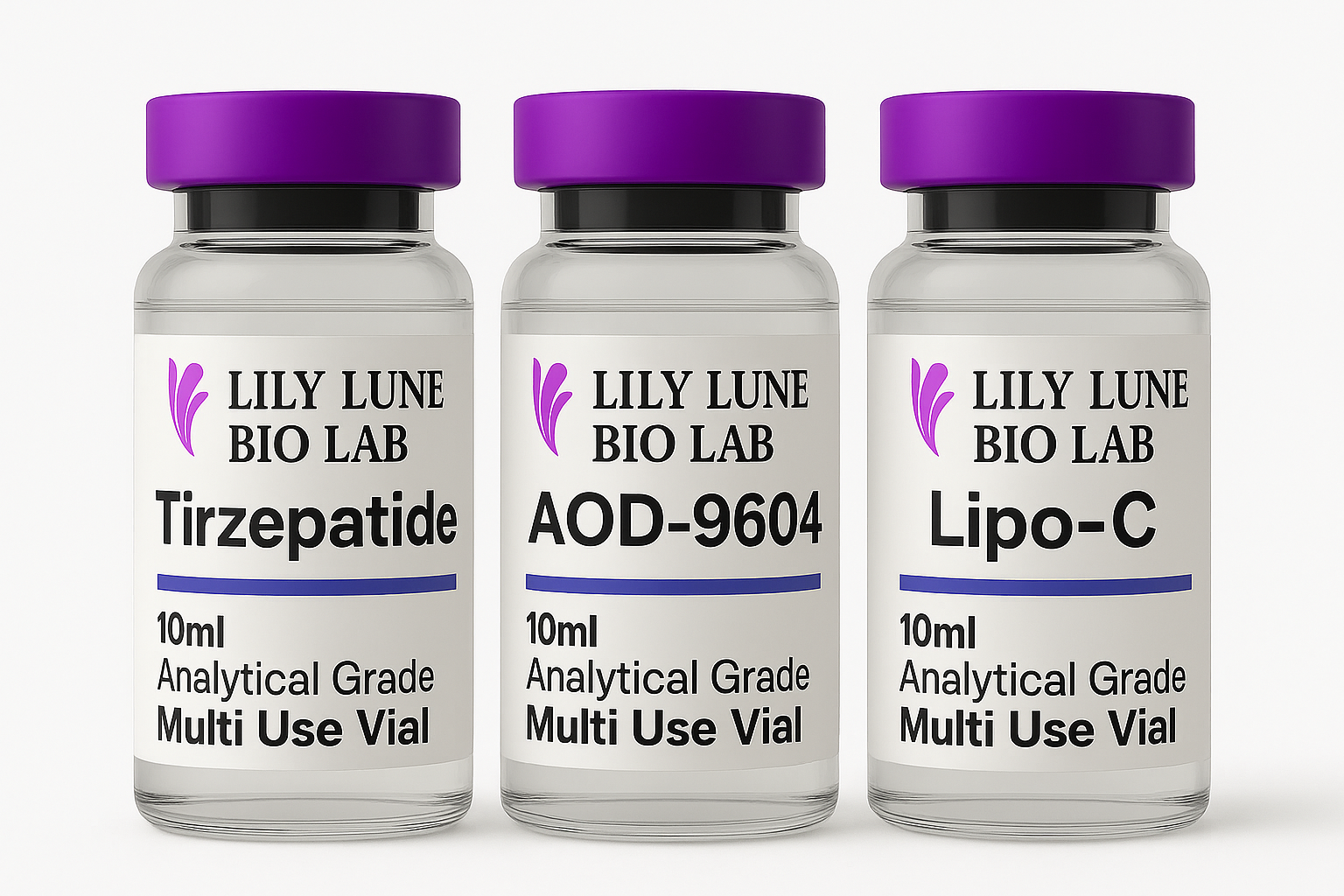 One 10ml vial is sufficient to reconstitute both peptide vials (Tirzepatide + AOD-9604) for a complete cycle.